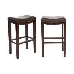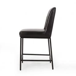 Berea 39.25 in. Midnight Black and Black Diamond Stitch Counter Stool (Set of 2) by Noble House