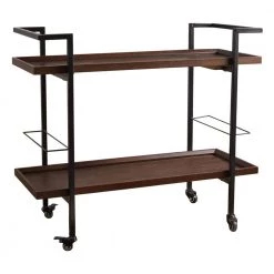 Sherianne Black Bar Cart with Tempered Glass Shelves by Noble House