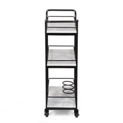 Judith Black and White 3-Tier Marble Shelf Bar Cart by Noble House