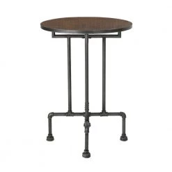 Dark Brown Round Wood and Metal Bar Table by Noble House