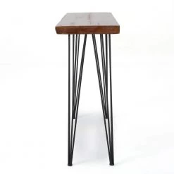 Natural Wood Finish Rectangular Wood and Iron Bar Table by Noble House
