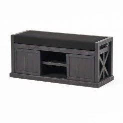 Cantebella Black Bench with Upholstered (19 in. x 43.25 in. x 15.75 in.) by Noble House