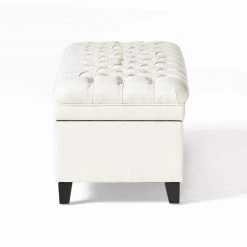 Juliana Tufted Ivory PU Leather Storage Bench by Noble House