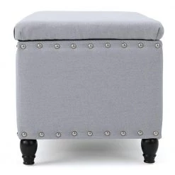 Tatiana Light Gray Polyester Storage Bench with Studs by Noble House
