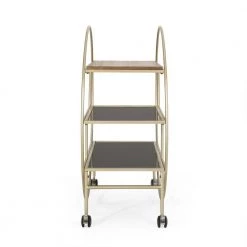 Mauhaut 36.5 in. Black, Gold, and Antique 3-Shelf Circular Bookcase with Wheels by Noble House
