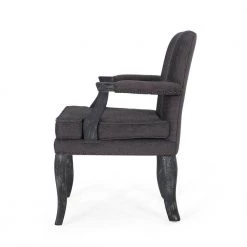 Ardson Midnight Black and Gray Faux Leather Dining Arm Chairs (Set of 2) by Noble House