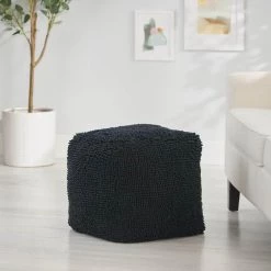 Cleves Flower Print on Black Medium Cube Pouf by Noble House