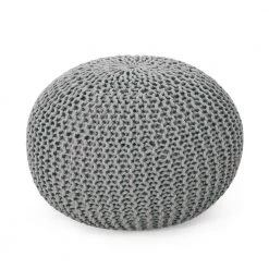 Sylas Ivory and Cedar Green Handcrafted Faux Yarn Cube Pouf by Noble House