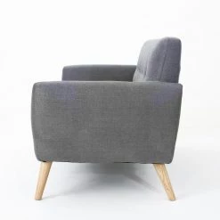 47.2 in. Charcoal Gray Polyester 2-Seater Armless Loveseat with Wood Legs by Noble House