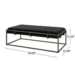 Lennon Farmhouse Teak Brown and Black Acacia Wood Indoor Bench with Shelf by Noble House