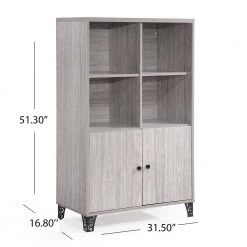 Justina Mid-Century Modern Oak Gray Fiberboard 2-Door Cabinet with 4-Open Shelves by Noble House