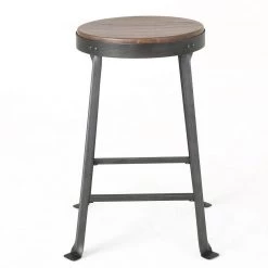 Liana 24 in. Brown Weathered Wood Counter Stool (Set of 2) by Noble House