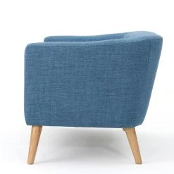 Bridie 51.5 in. Muted Blue Polyester 2-Seater Armless Loveseat with Tapered Wood Legs by Noble House
