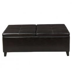 Lanister Brown PU Leather Medium Storage Bench by Noble House