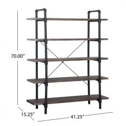 Kodiak 70 in. Dark Brown Wood 5-Shelf Etagere Bookcase by Noble House