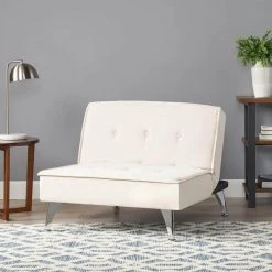 This posh ivory sofa bed offers a unique seating solution for any room in your home. It can be laid flat or propped upright to create a backrest, turning it quickly and easily from day lounge to sofa. The modern sofa bed is a great option for a loft space, as you can go from a sitting room to a bedroom in seconds.