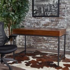 - Finish: Dark Walnut : Leg Finish: Rustic Metal