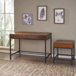 Turn any space into a super-productive workshop with this rugged, industrial desk and side table combination. Combining functionality with fashionable looks, the desk and side table double as storage areas, and both pieces are crafted according to the exacting standards from sustainable acacia wood and high-quality iron. You’ll treasure these pieces for years to come.