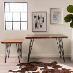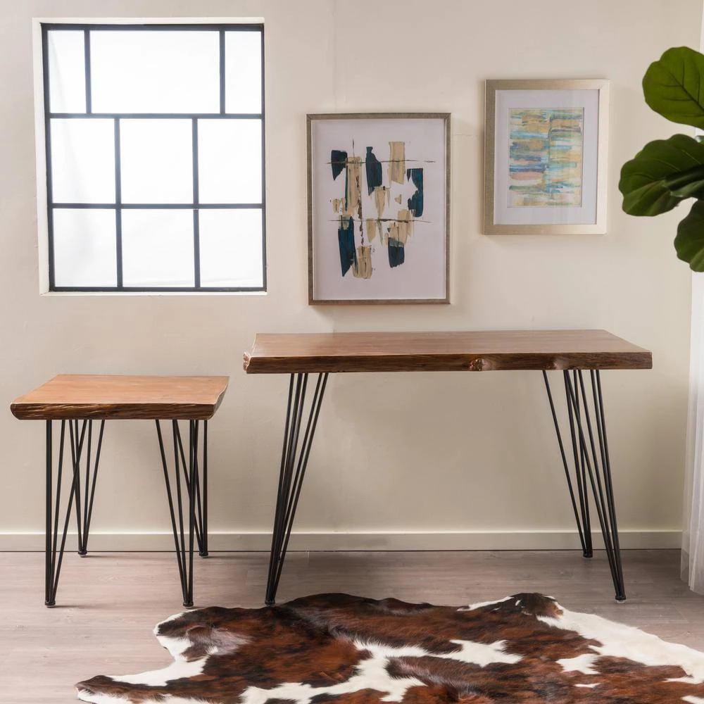This desk set is a new take on an old idea. Always running out of space on your desk for things such as your giant printer (who has room for that!)? This set is the answer to all of your desk space problems. Not only does this set come with a faux live edge desk, but it also comes complete with a side table for all of your extra space needs. The side table also features a faux live edge, and both tables have the same finish for one cohesive look.