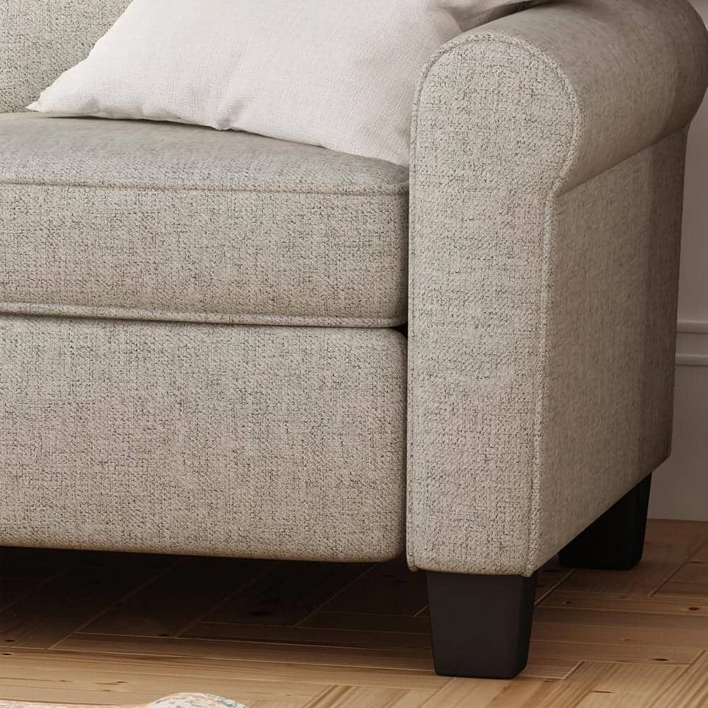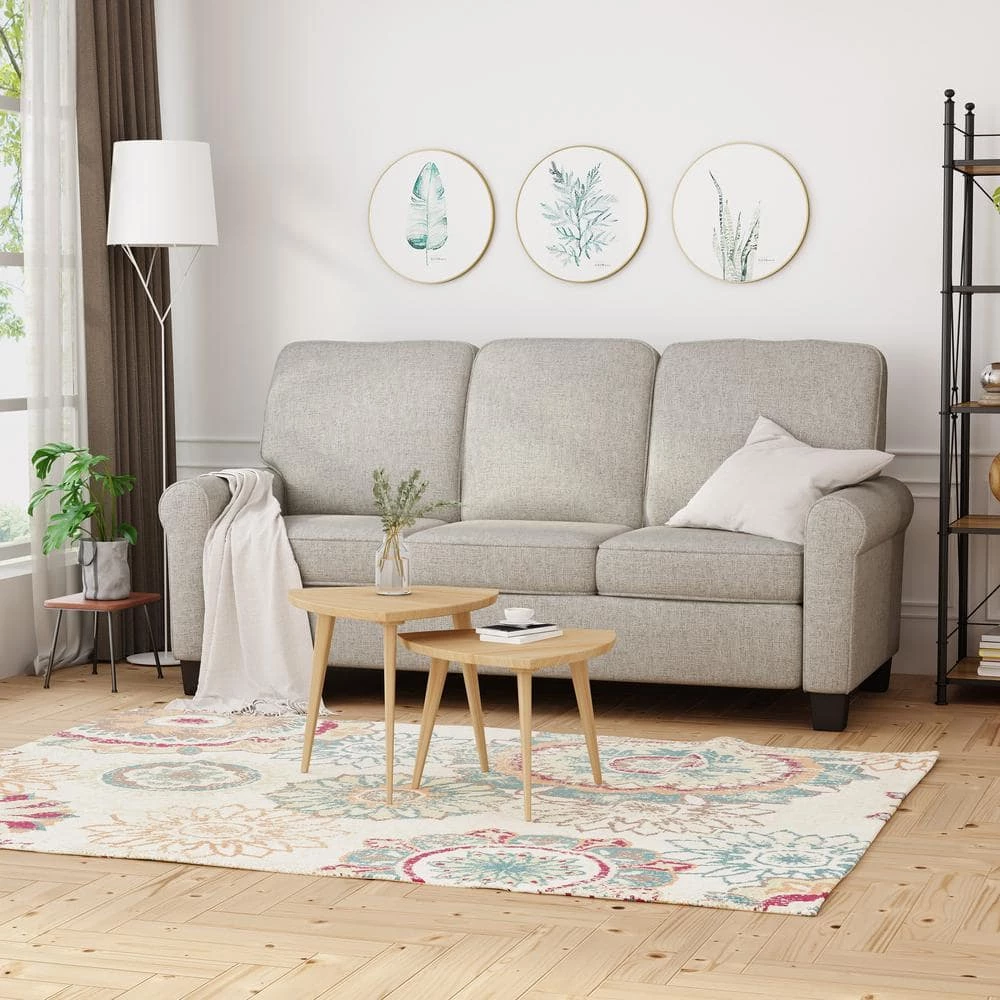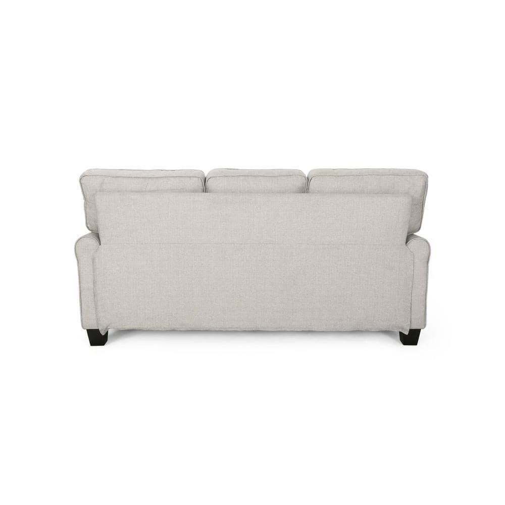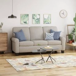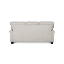 Incorporate a traditionally-inspired accent furniture into your home with this 3-seater sofa. This piece features plush, overstuffed cushions and upholstery complemented by piped edges and thick, tapered black legs. This sofa is small enough for rooms of modest proportion while still remaining big enough for everybody to share.