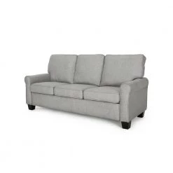 Incorporate a traditionally-inspired accent furniture into your home with this 3-seater sofa. This piece features plush, overstuffed cushions and upholstery complemented by piped edges and thick, tapered black legs. This sofa is small enough for rooms of modest proportion while still remaining big enough for everybody to share.