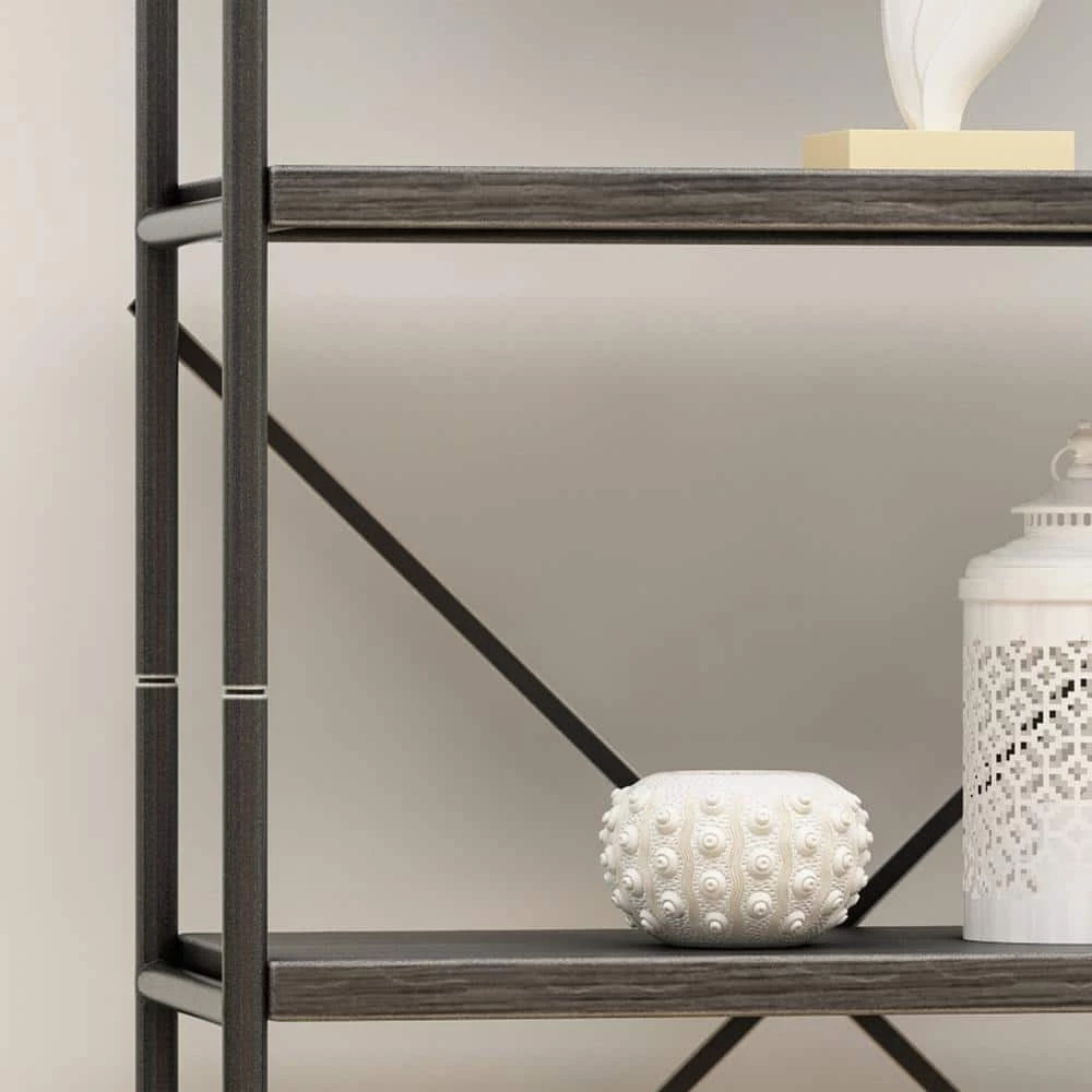 Showcase a set of pictures or display your favorite potted plants with a raw and edgy style. Featuring an industrial design, our bookcase uses metal piping for an exposed yet sleek look. The metal piping also creates a highly durable structure that is fortified with an X-frame stretcher to ensure the best stability for your home. Finished with natural firwood, this piece offers five delightful shelves that provide ample space for display and organization, allowing you to easily personalize your home.