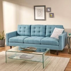 Your interior space will never be the same with our understated contemporary three-seater sofa as its centerpiece. With precise lines and neat, button-tufted waffle stitch look, this lovely sofa will effortlessly transform your living space with just the right amount of charm and an abundance of coziness. From its trendy streamlined design to its sleek tapered legs, this piece will surely become your favorite seating space to sit back and enjoy a memorable evening at home with your loved ones.