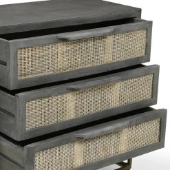 Upgrade the plain spaces of your home with a wonderfully charming piece that offers both style and function for all to admire. Featuring a stunning handcrafted structure for a one-of-a-kind design, our mango wood cabinet brings a sophisticated yet boho touch to your home using mixed materials. This cabinet is completed with outstanding wicker accents and three drawers, giving you ample room and style to organize your items. Blending seamlessly with your existing decor, this stand will bring out the best of your interior space.