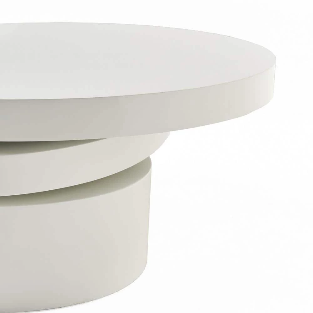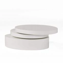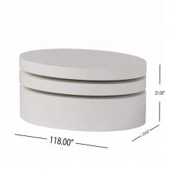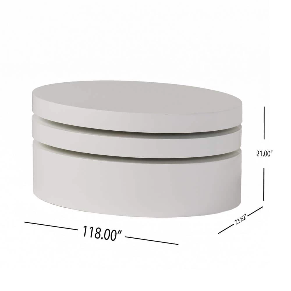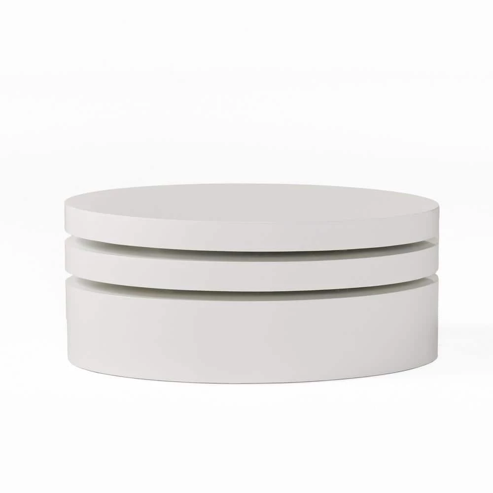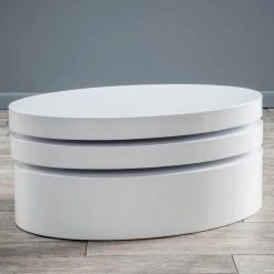 The Alan Glossy White Small Oval Rotatable Coffee Table offers a clear late 60’s vibe to any room it is placed in. With a rotating top and extra storage underneath this table is multi-functional and unique. Make a statement in your home with this exciting piece. It is truly great for hosting.