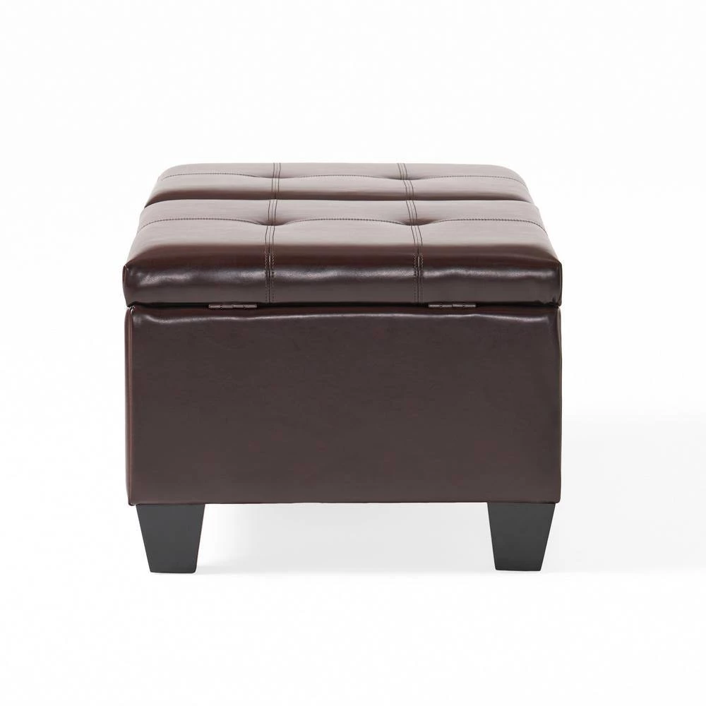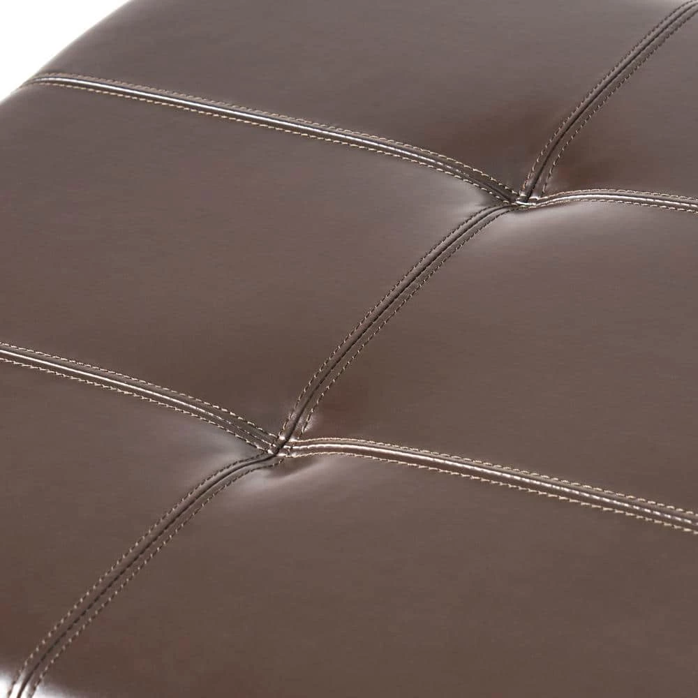 The alfred leather storage bench has a unique design that offers quality, style and appearance with incredible storage. It is upholstered with fine, luxurious brown leather on all sides. Its double lid top opens to reveal spacious interior ideal for storing seasonal decor, extra pillows or throws. This piece makes a great coffee table and footstool as well.