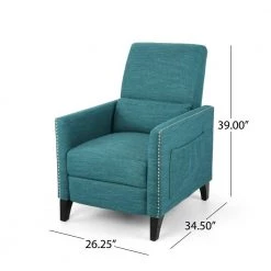 Sit back and enjoy a relaxing evening in our sleek push-back recliner, perfect for unwinding after a long day. This convenient contemporary recliner chair provides an incredibly high degree of coziness in an attractive package. Featuring plush seating and an intricate nail head trim, this recliner pairs perfectly with the push-back functionality allowing for high comfort with little effort. Sure to become the new favorite spot of leisure, you and your family will surely enjoy this recliner for years to come.