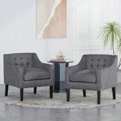 Get the perfect contemporary look for your home with the help of a comfortable club chair set. This set of 2-is perfect for any room.in the house with its sloped arms and beautifully crafted button-tufted waffle stitching. Made with solid wood, the legs come in a tapered style to help complete the contemporary feel for your home. Not only does this chair set offer a comfortable space for you to relax but will also give your home a fresh, new look without the stress of completely redecor. ting.