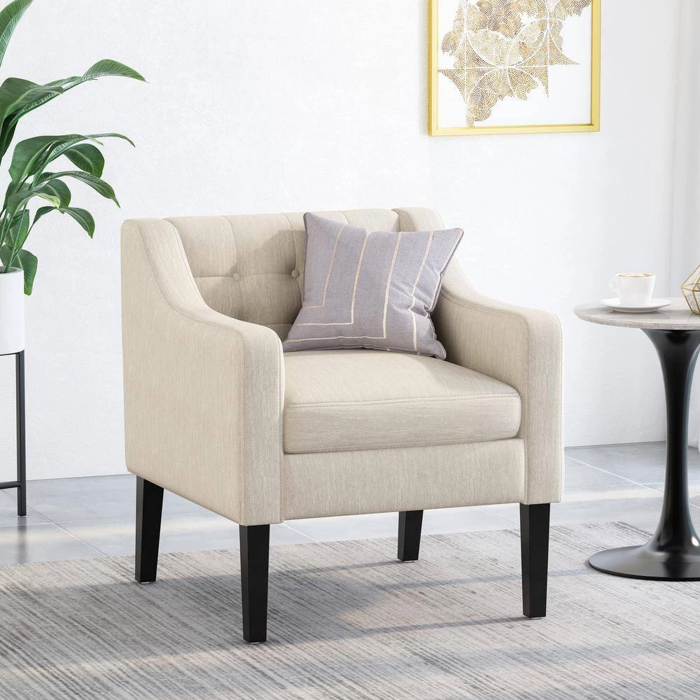 Get the perfect contemporary look for your home with the help of a comfortable club chair. This piece is perfect for any room in the house with its sloped arms and beautifully crafted button-tufted waffle stitching. Made with solid wood, the legs come in a tapered style to help complete the contemporary feel for your home. Not only does this chair offer a comfortable space for you to relax but will also give your home a fresh, new look without the stress of completely redecorating.