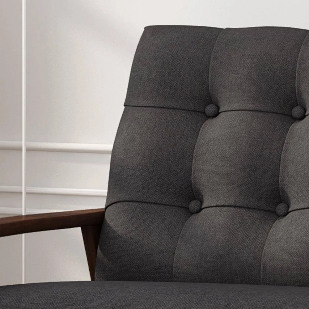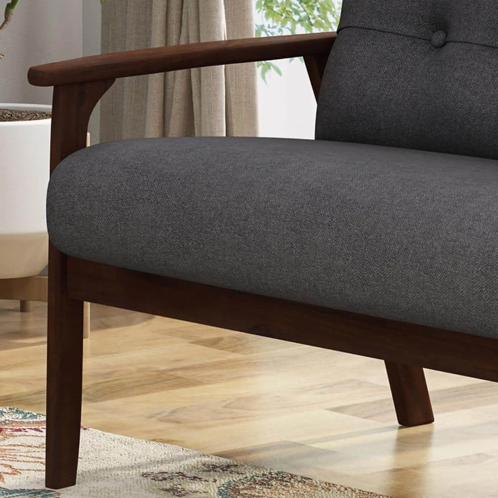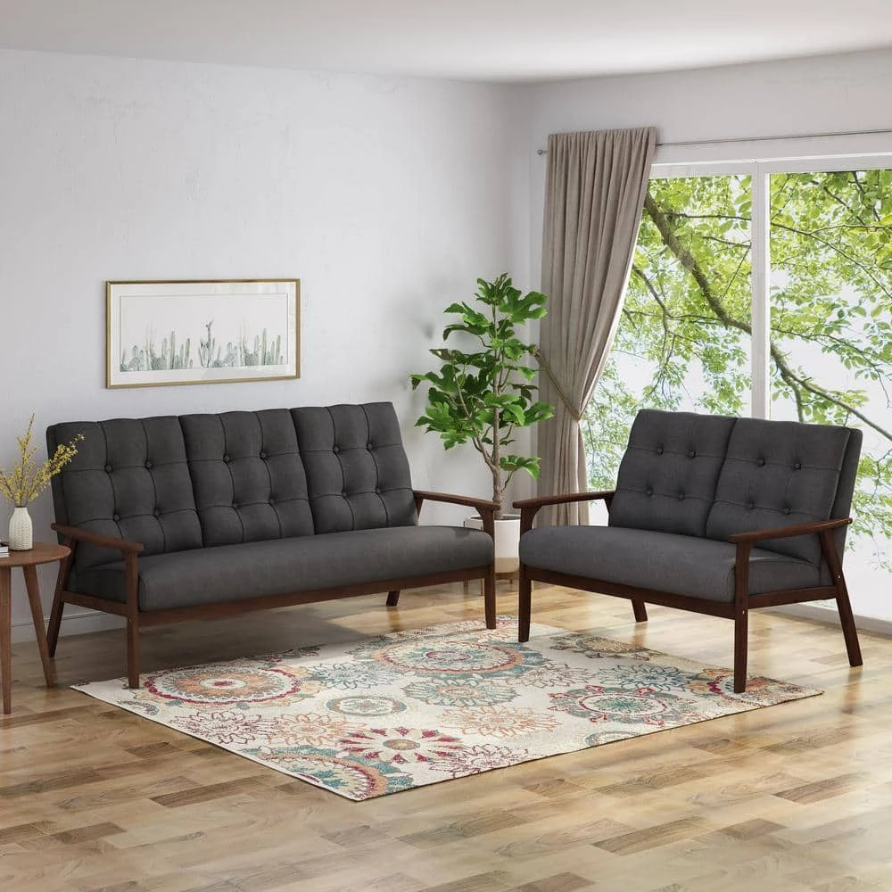 Bring home a sofa set that will redefine how you view your living space with polished textures and impeccable style. Our sofa and loveseat set combines understated materials and refined upholstery to create a piece that is worthy of any room. Featuring gorgeous button tufting that is finished with waffle stitching, this set offers your decor both texture and upgraded design. With a smooth wood frame and a rich walnut finish, this set will give any room a sophisticated touch that accentuates mid-century style.