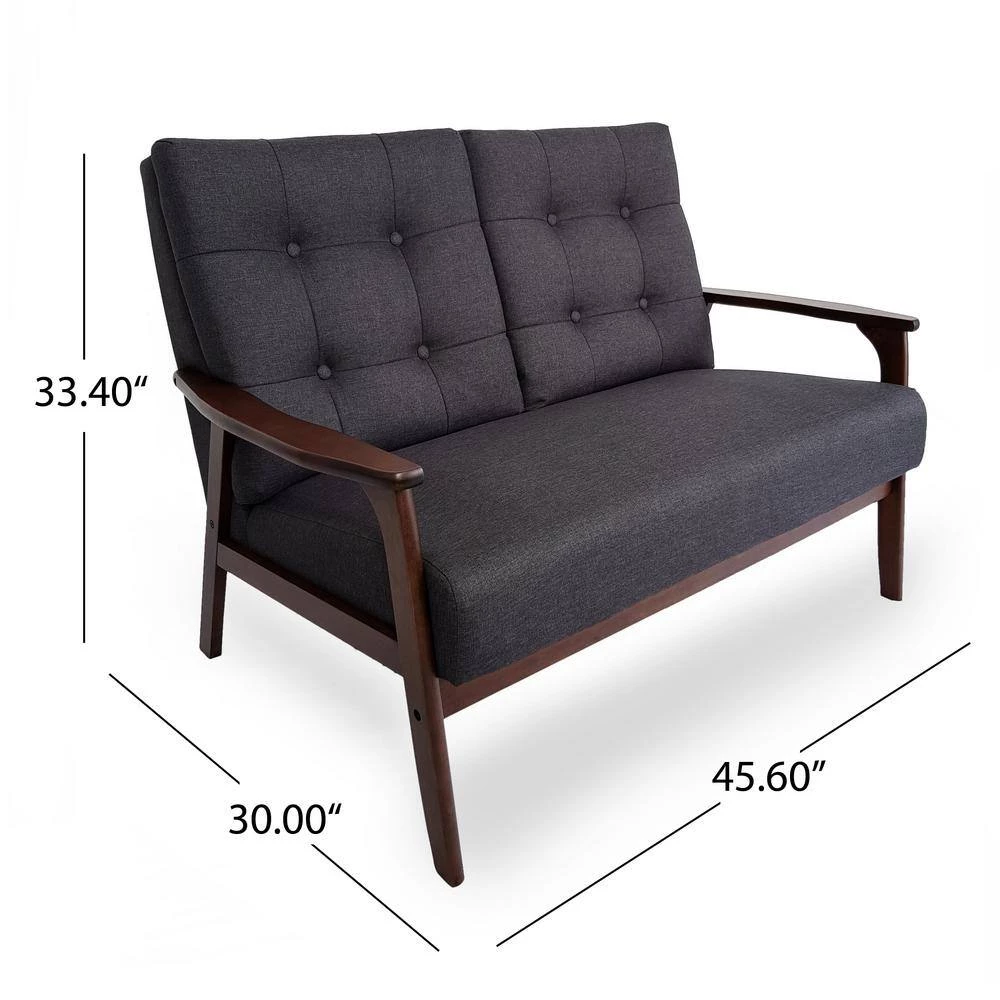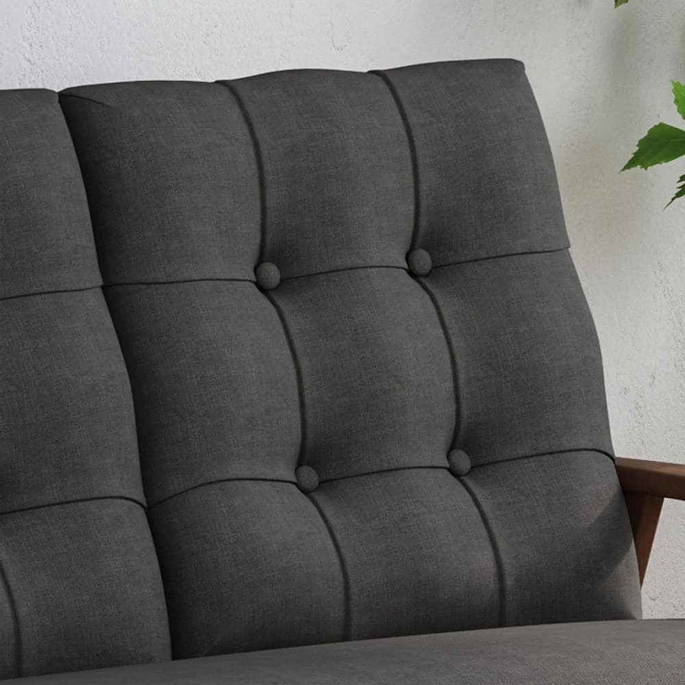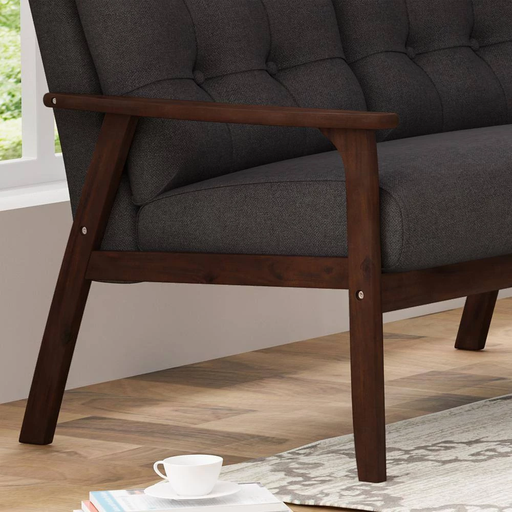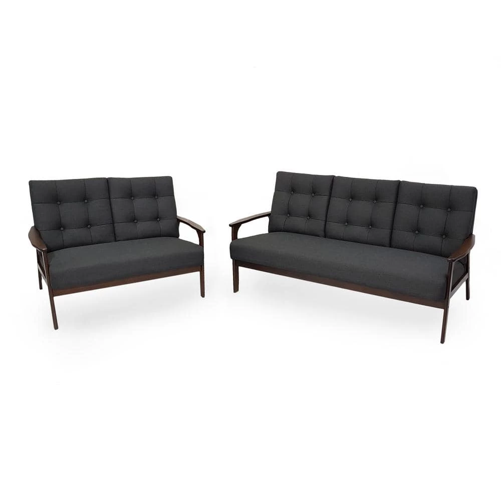 Bring home a sofa set that will redefine how you view your living space with polished textures and impeccable style. Our sofa and loveseat set combines understated materials and refined upholstery to create a piece that is worthy of any room. Featuring gorgeous button tufting that is finished with waffle stitching, this set offers your decor both texture and upgraded design. With a smooth wood frame and a rich walnut finish, this set will give any room a sophisticated touch that accentuates mid-century style.