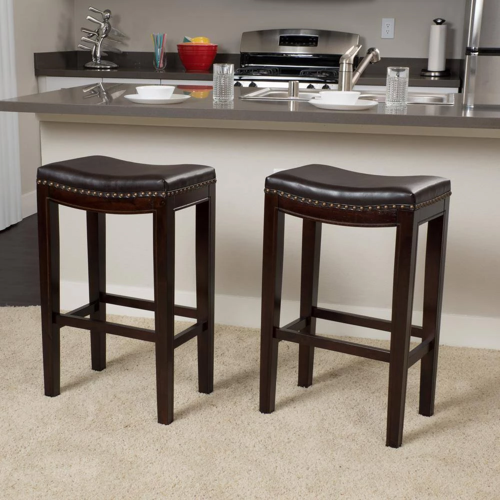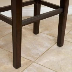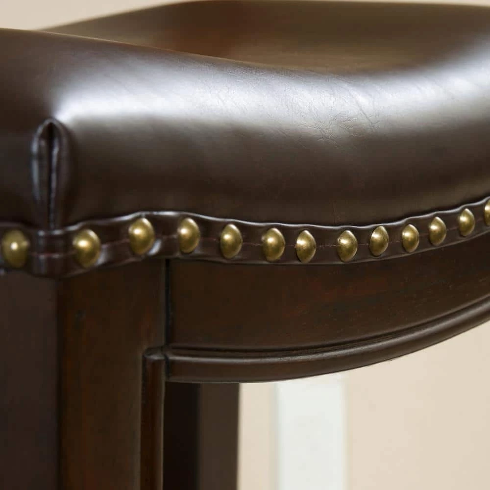 Enhance any space with the Noble House Avondale Bar Stool. Coming with a wooden frame, this stool will be an aesthetically appealing, long-lasting piece of furniture for any home. It is made with a faux leather seat, adding a stylish touch. With a backless design, it will perfectly fit beneath the island or table. Featuring a modern style, it is perfect for revamping your decor. This stool features a saddle seat, which promotes good posture. Designed in brown, it will go well with the rest of your home decor.