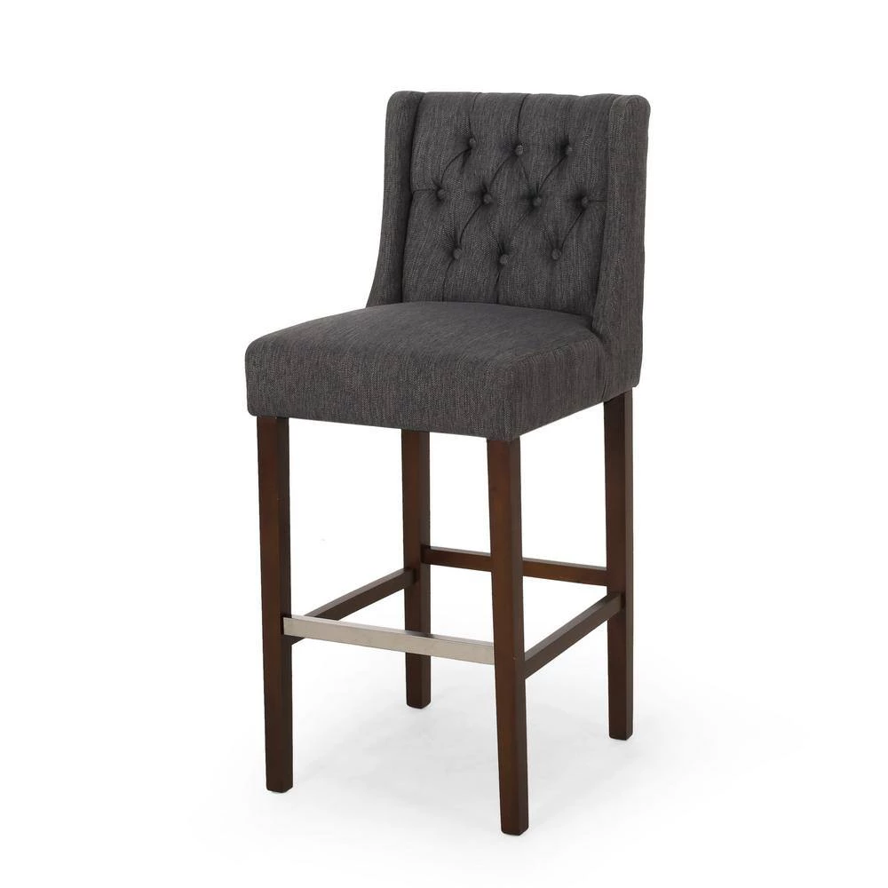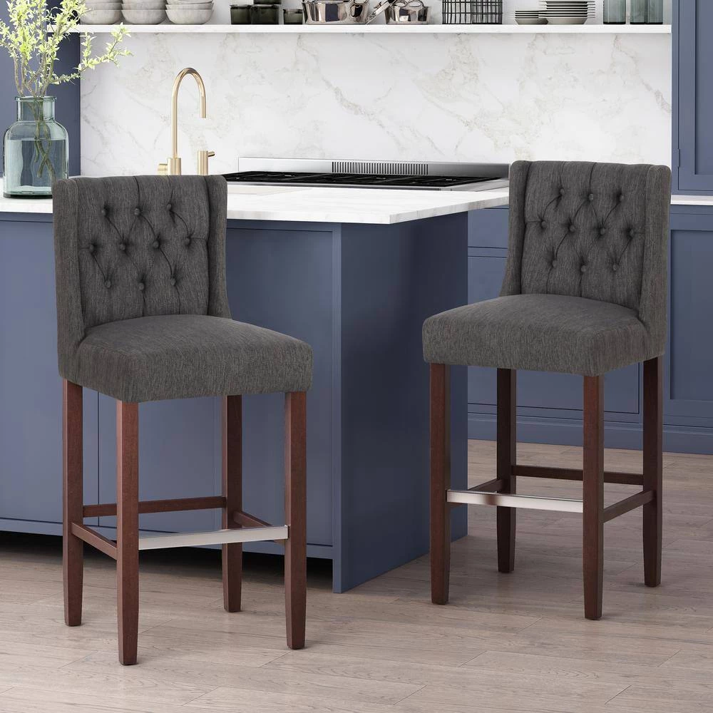 Combine contemporary vibes with classic structure to create the perfect seating arrangement for your home bar. With a refined wood look and delightfully upholstered seating, our barstool set creates an exquisite contemporary appeal that also brings incredible function to your kitchen nook or home bar. The H-frame legs create a durable structure that ensures stability for you and your guests. Finished with classic button tufting and wingback design, this barstool set offers a sophisticated design that enhances the style of any home.