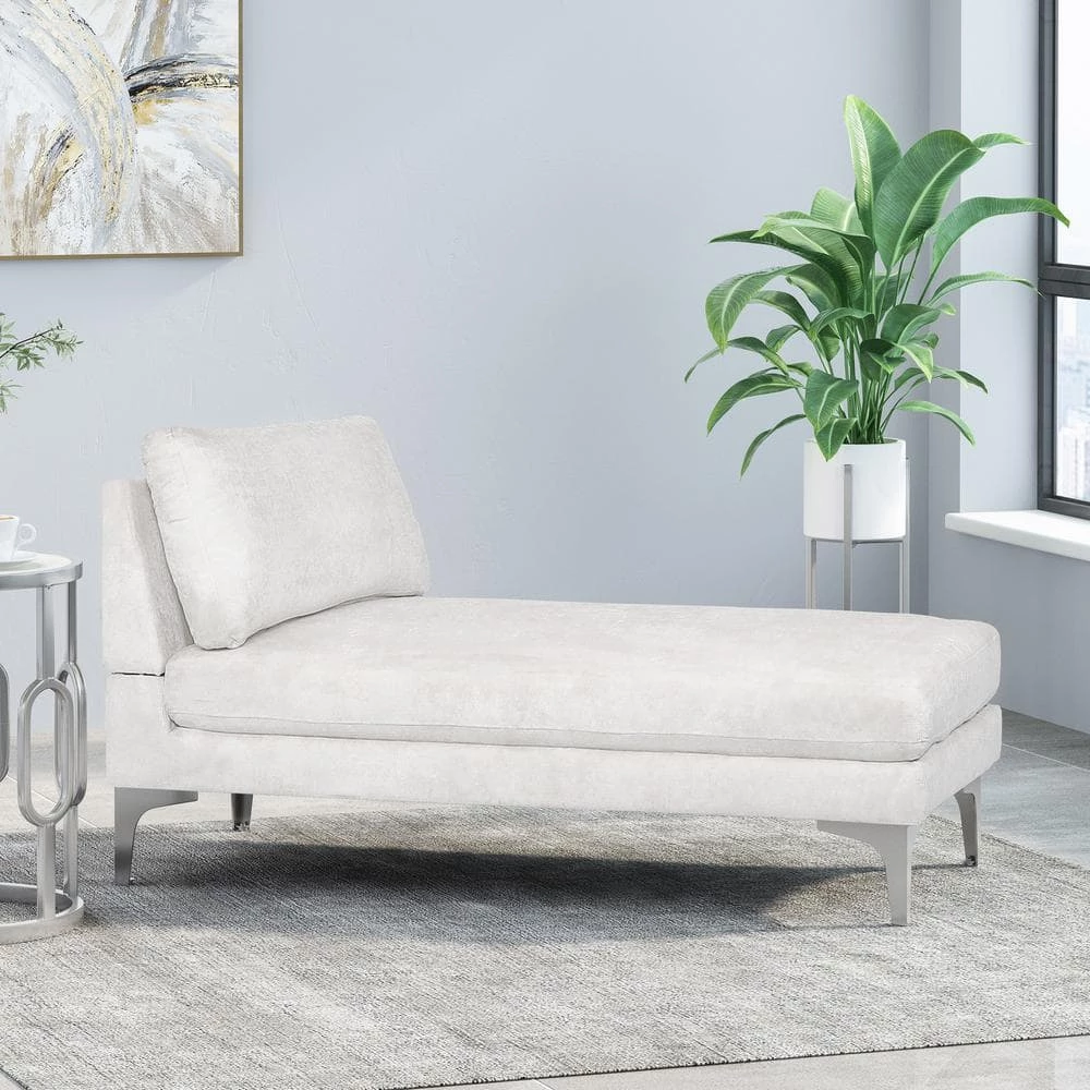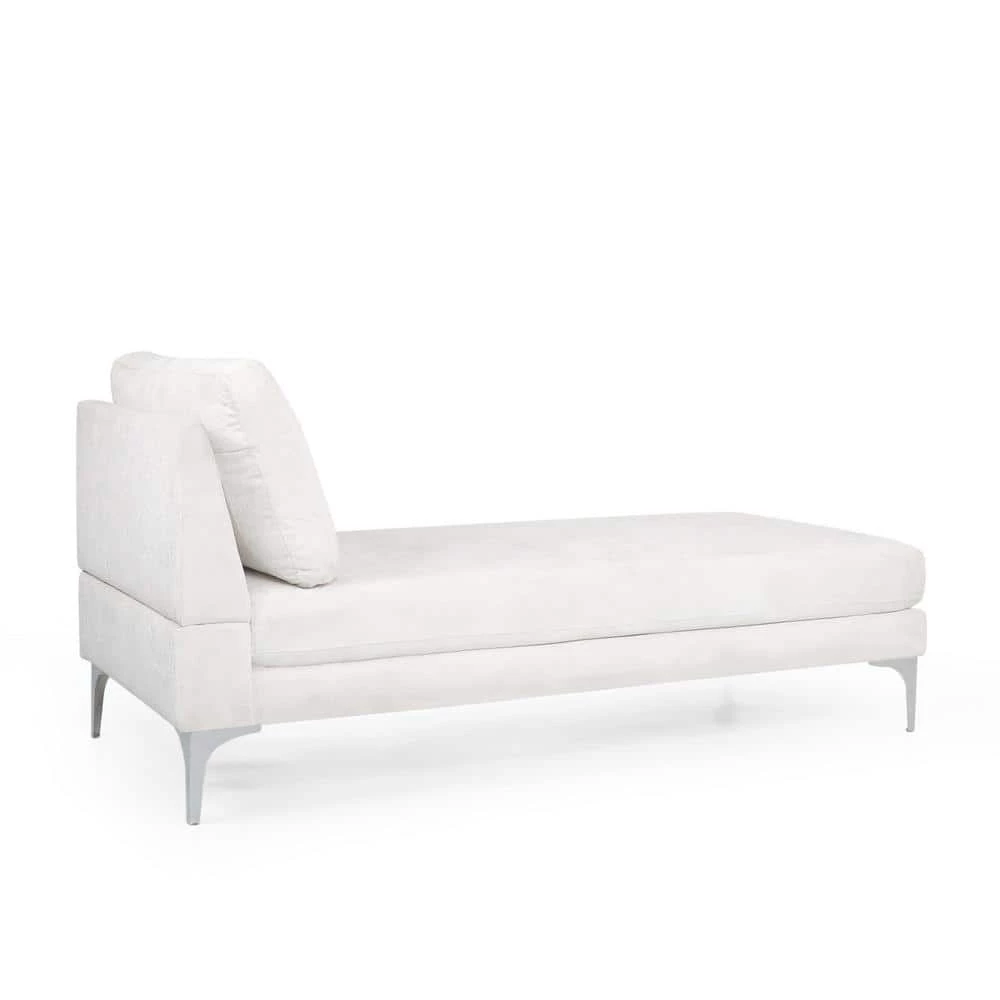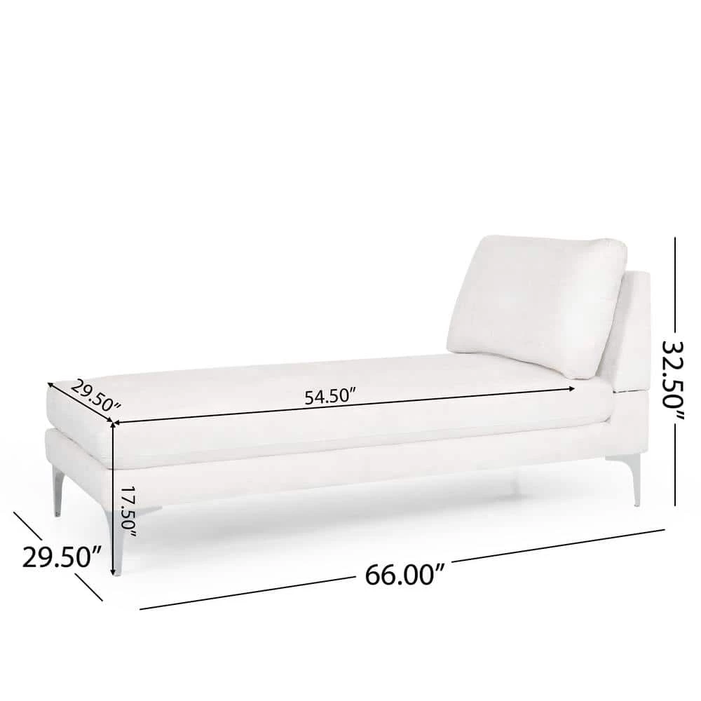 If you are looking to upgrade your seating ensemble, then look no further. Featuring smooth upholstery and stunning silver bracket legs, this chaise lounge is the perfect spot to stretch out and relax on a weekend afternoon. Our chaise lounge is finished with a plush backrest pillow, making this both a comfortable and modern addition to your living room space. Perfectly balancing comfort and style, this chaise lounge invites you to stretch out and relax in outstanding coziness with its spectacular design.