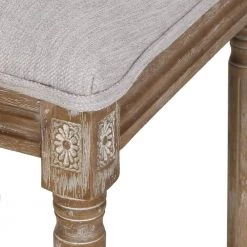 Finely crafted with sophistication, these chairs turn your dining area into a masterpiece. Drawing from French country inspiration, our set of two dining chairs feature an understated rectangular backrest made with cane, smooth upholstered seating, and fluted legs to offer your home something a little out of the ordinary while also remaining true to their elegant, old-fashioned roots. Their weathered frames showcase wonderfully contrasting lines and carved accents that encourage both casual meals with your family or extravagant dinner parties with your guests.