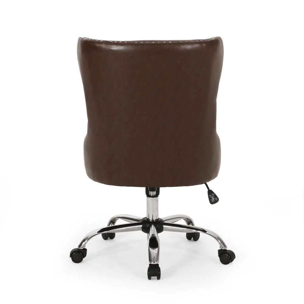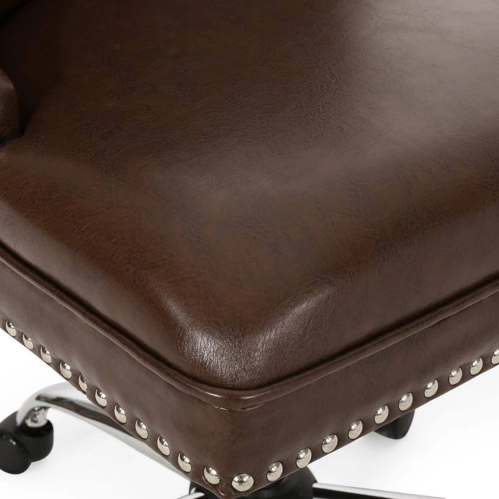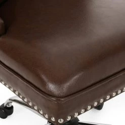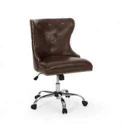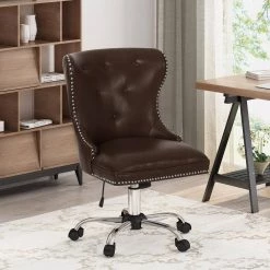 Round out your office decor with a sense of sophistication and outstanding comfort. With stunning button tufting, wingback design, and an outstanding chrome base, our office chair brings any space a luxurious contemporary atmosphere. This is finished with excellent functionality including a lift mechanism for adjustability and swivel moment, and rolling casters for easy mobility. Refined with a beautiful nailhead trim, our chair will effortlessly polish your office space with stunning sophistication whether you are at home or at work.