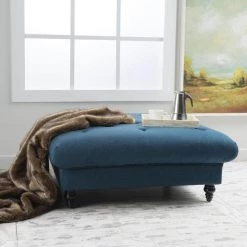 You and your guests will appreciate this plush ottoman. Its tufted pillow top and colored fabric make this ottoman both comfortable and luxurious while provides extra seating with style. Flaunting a dark blue finish that adds personality to your home space.