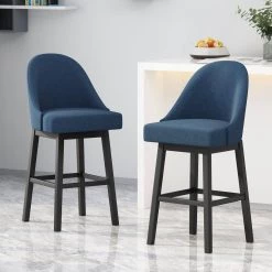 Add stunning style to your entertainment space with sleek design, delightful functionality, and plush comfort. Our bar stool set is an impressive addition to any home with its beautifully curved backrest and splayed legs. Featuring smooth upholstery and a convenient swivel feature, these bar stools will instantly upgrade your decor with a touch of modern. Not only are they the perfect bar height but they also feature a stylish, enclosed base that provides an extra boost comfort while you wine and dine.