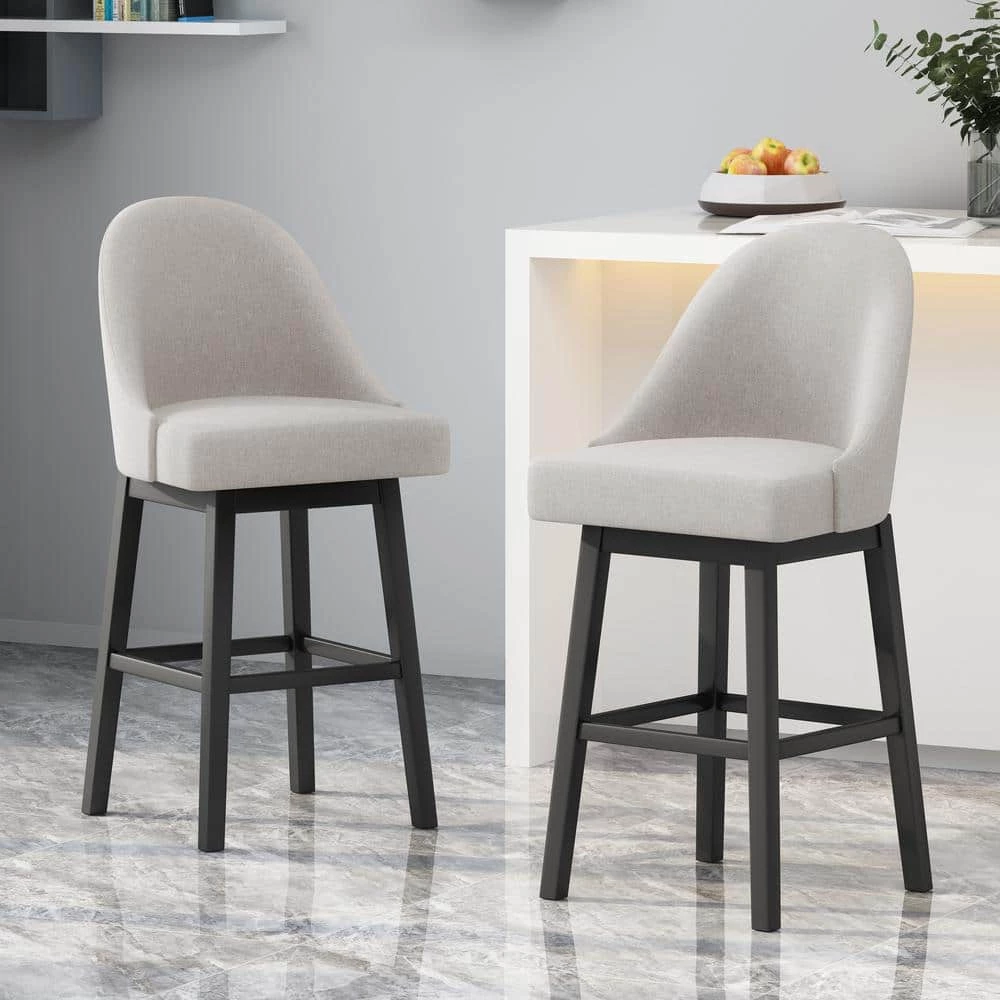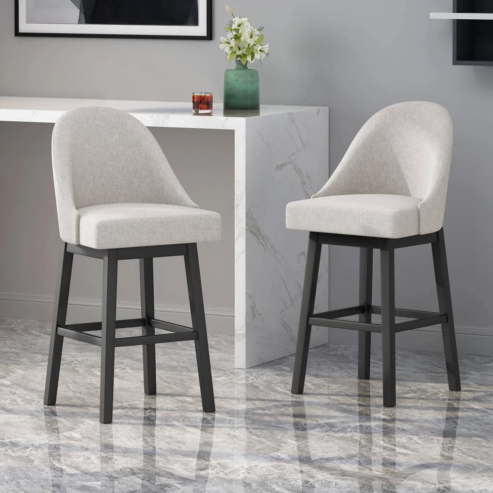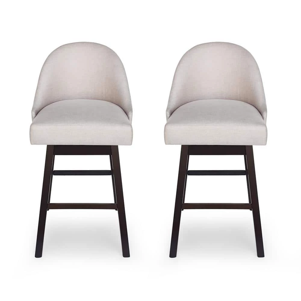 Add stunning style to your entertainment space with sleek design, delightful functionality, and plush comfort. Our bar stool set is an impressive addition to any home with its beautifully curved backrest and splayed legs. Featuring smooth upholstery and a convenient swivel feature, these bar stools will instantly upgrade your decor with a touch of modern. Not only are they the perfect bar height but they also feature a stylish, enclosed base that provides an extra boost comfort while you wine and dine.