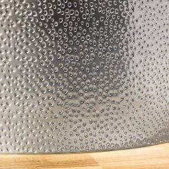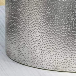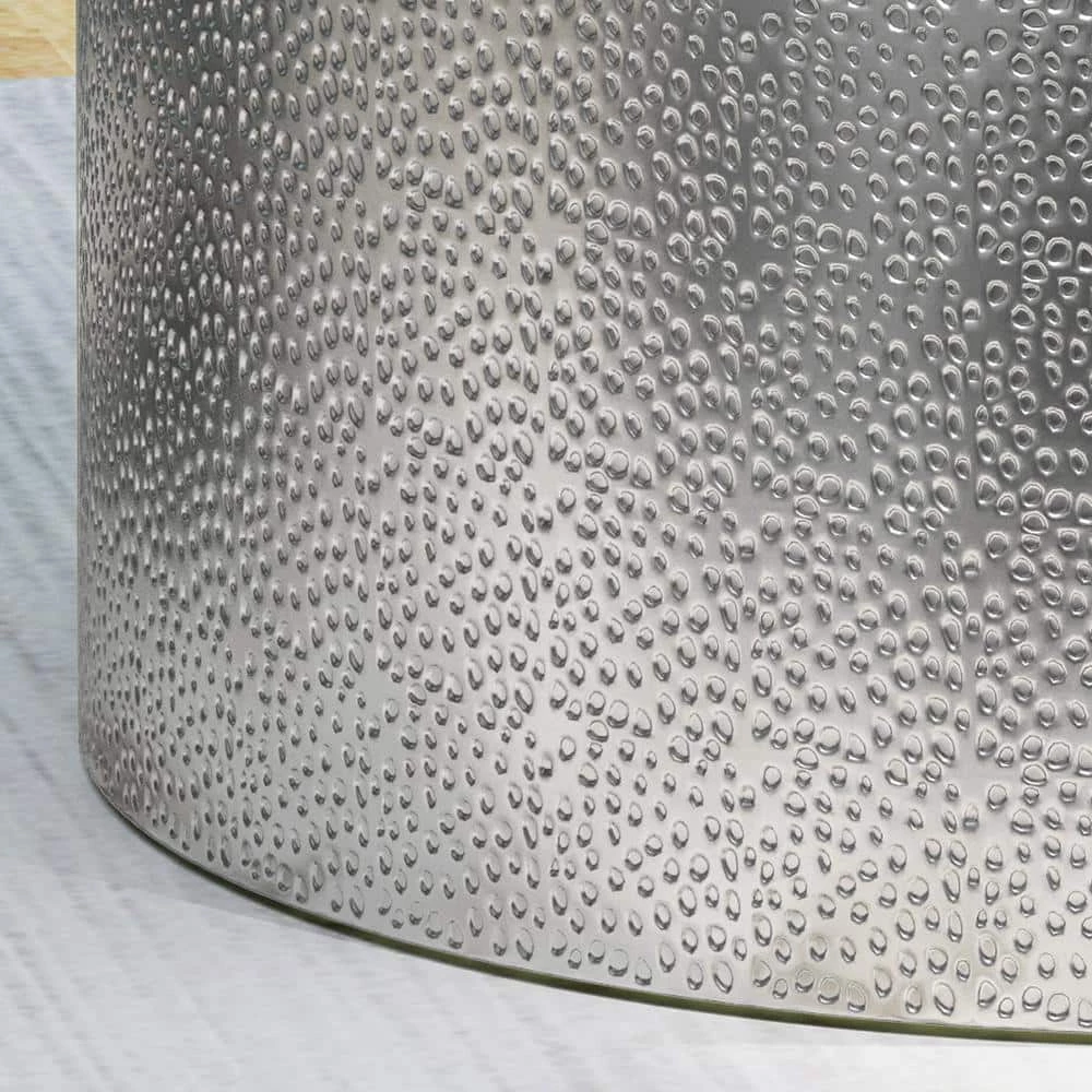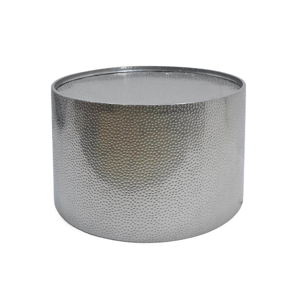 Upgrade your living room style with a splash of sophistication that will give an extra boost of modern design and industrial influences to any home. Featuring a gorgeous hammered surface, our coffee table can act an outstanding centerpiece or can offer up a tray of snacks for your guests. With an iron frame welded together to form a cylindrical silhouette, this showcases a brilliant textured finish and a metallic sheen that will enhance the look of your home for years to come.