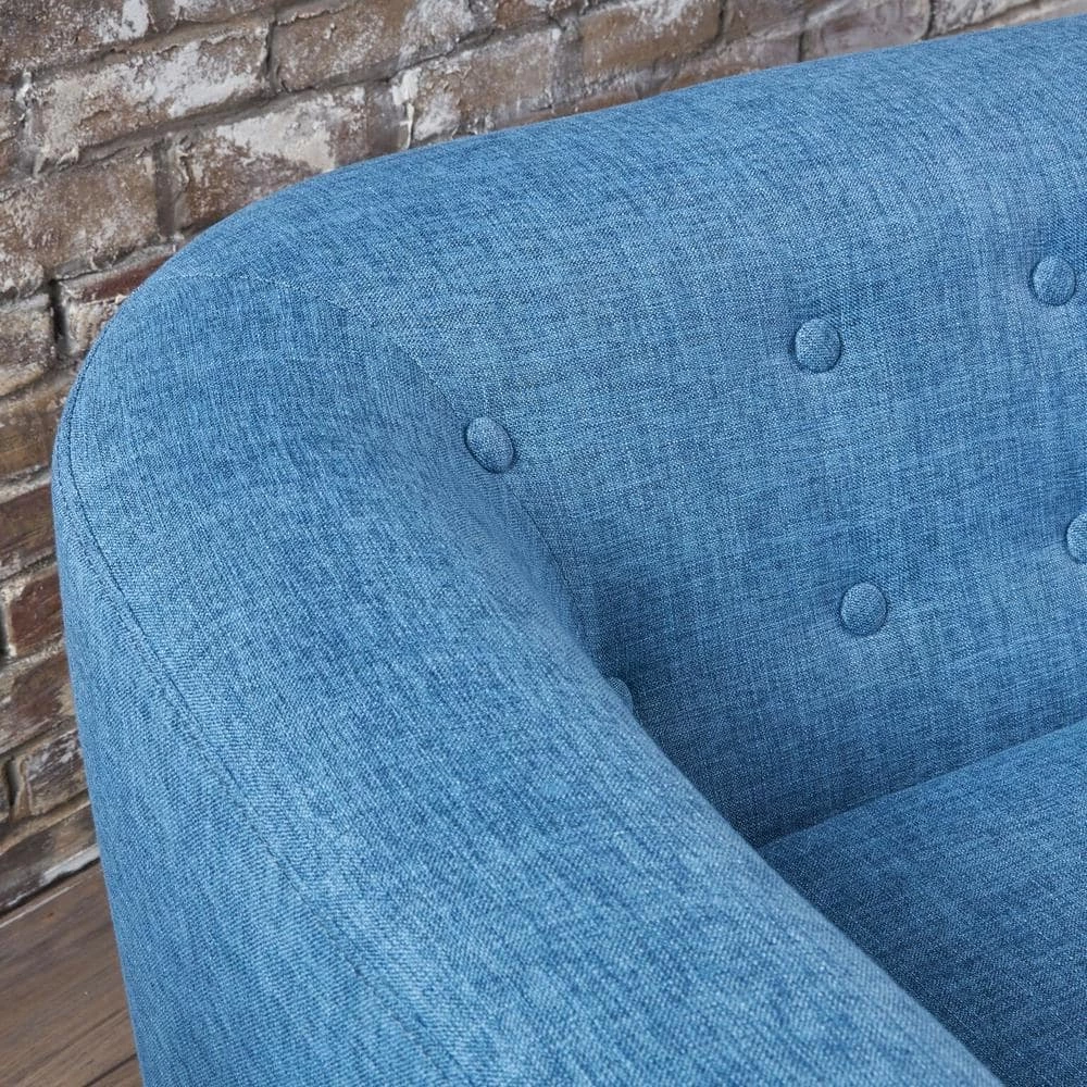 Treat your interior space to an outstanding seating addition that adds an abundance of retro charm to any room. Featuring button-tufted waffle stitching in the backrest and a cozy tub-shaped design, this exquisite loveseat is perfect for smaller living spaces. This takes a gorgeous classic look and brings an impressive modern twist, easily anchoring your decor in an atmosphere of elegance. Finished with iconic splayed legs, our loveseat brings a stunning mid-century modern look and outstanding durability to your home.