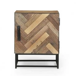 Combine crisp design, unique details, and a homey atmosphere to create the perfect accessory for your home. Featuring a sleek zig-zag slat pattern and a beautiful handcrafted touch, our nightstand brings a boho atmosphere to any bedroom with its sleek look. This nightstand is supported by a sturdy iron frame and completed with plenty of storage space, giving you ample room and style to organize your items. Blending seamlessly with your existing decor, this nightstand will frame your bed with a raw and edgy charm.