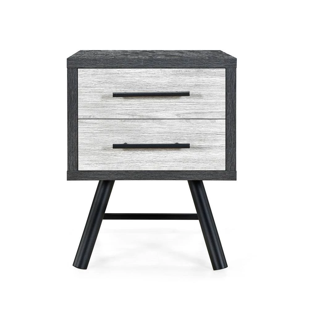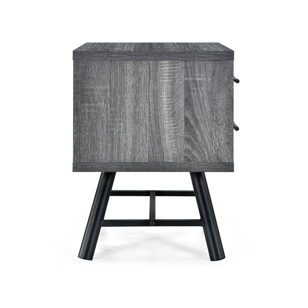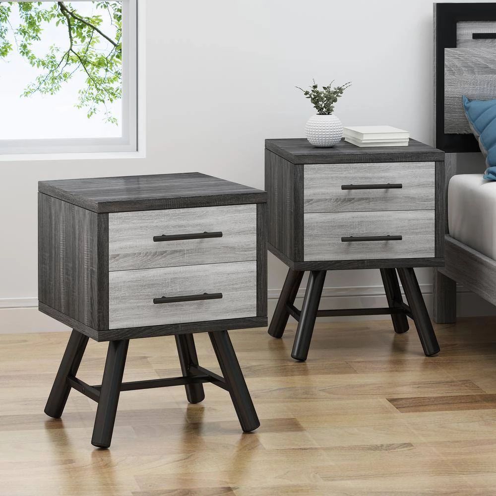 Your phone, alarm clock, and bedside lamp can be an arm’s reach away while you snuggle into your blankets for a night of good rest. Featuring a smooth wood-like finish that is supported by sturdy iron legs, our nightstands bring modern industrial sophistication to any bedroom with its sleek look. This nightstand set is completed with plenty of storage space, giving you ample room and style to organize your items. Blending seamlessly with your existing decor, these nightstands will frame your bed with a raw and edgy charm.