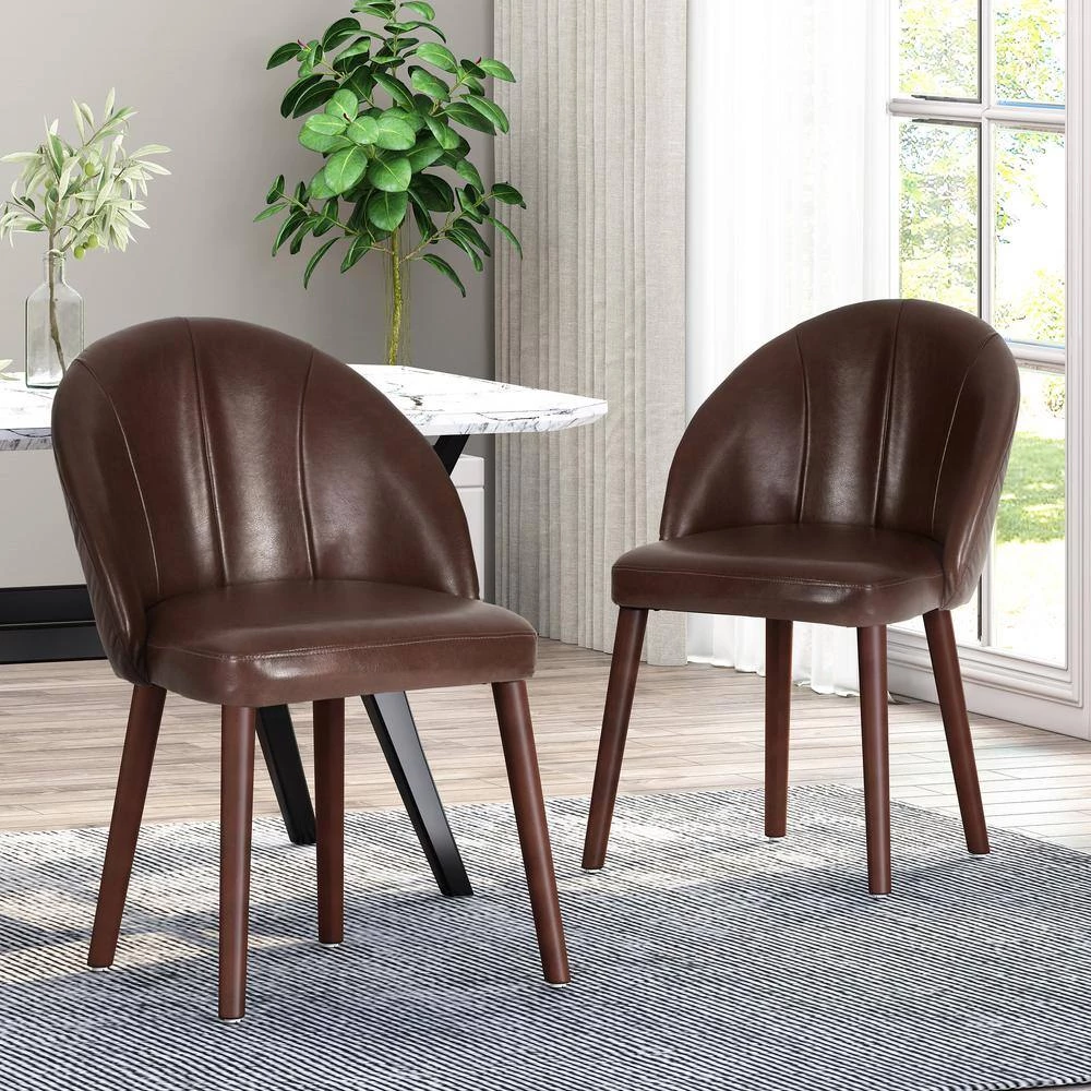 Turn your dining area into a true masterpiece of style and comfort with a set of dining chairs that exudes undeniable superiority. Featuring lovely channel stitching, plush upholstered seating, and elegantly tapered legs, these chairs offer a refined contemporary atmosphere to your dining area, as well as a hint of mid-century modern influence. Our stunning dining chair set features graceful round sloped armrests and is finished with gorgeous flared legs, making this the perfect balance of stunning style and convenient functionality.