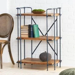 Build your outdoor space around a solid industrial look to create a perfect ensemble for your backyard. Expertly constructed from distinctive metal pipework and inlaid with carefully-sourced solid fir, our etagere bookcase is designed to hold up under heavy use. Its shelves are an excellent display for your plants or other treasured items including candles, gardening tools, or a refreshing tray of drinks. These shelves can hold it all. Perfect for covered patios or backyard spaces, our bookcase will add more storage space wherever you need.