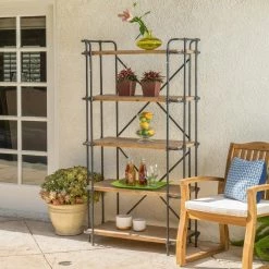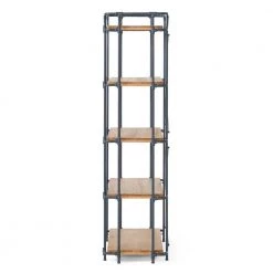 This rugged, industrial bookshelf will add grit and character to any outdoor space, perfect for those who never stop striving. Expertly constructed from distinctive metal pipework and inlaid with carefully-sourced solid fir, our etagere bookcase is designed to hold up under heavy use. Its shelves are an excellent display for your plants or other treasured items including candles, gardening tools, or a refreshing tray of drinks. These shelves can hold it all. Perfect for covered patios or backyard spaces, our bookcase will add more storage space wherever you need.